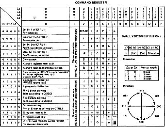 Ins Kommandoregister kann nur geschrieben werden. Jeder Befehl (siehe Tabelle) löst eine Aktion des GDP aus. Durch einige Befehle können auch Bits in anderen Registern geändert werden.