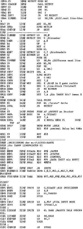 Mit obigem Programm wird die Grafik in 256 Zeilen zu 512 Punkten im Maßstab 1:1 ausgegeben. Da nun aber der EF 9366 ein quadratisches Bild erzeugt, erscheint die gedruckte Grafik üblicherweise verzerrt, d.h. in Y-Richtung gestaucht: aus einem Kreis wird eine Ellipse, aus einem Quadrat ein Rechteck,