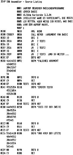 Im folgenden möchte ich Ihnen eine Möglichkeit skizzieren, wie Sie auf eine sogar etwas schnellere Art zwischen mehreren Maschinenprogrammen wählen können. Das Programm hat keinen praktischen Wert; es ist nur zur Demonstration und zum Test gedacht. Eine praktische Anwendung werde ich Ihnen demnächst in einem Verwaltungsprogramm geben, welches wir zur Berechnung unserer Vorsteuerabrechnung verwenden.