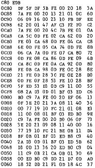 Dann das eigentliche Bild im gleichen Raster in der Reihenfolge, wie man liest, wobei die linke obere Ecke der erste Speicherplatz des entsprechenden Bildes ist (Siehe Tabelle).