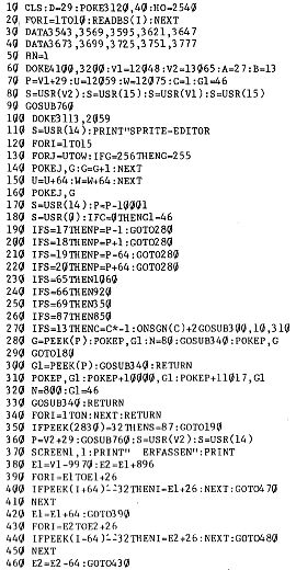 Der SPRITE-EDITOR benutzt die USR-Routinen, um die reservierten Speicherplätze für die Optionen Bild 1…10 mit den entsprechenden Bildern zu programmieren.