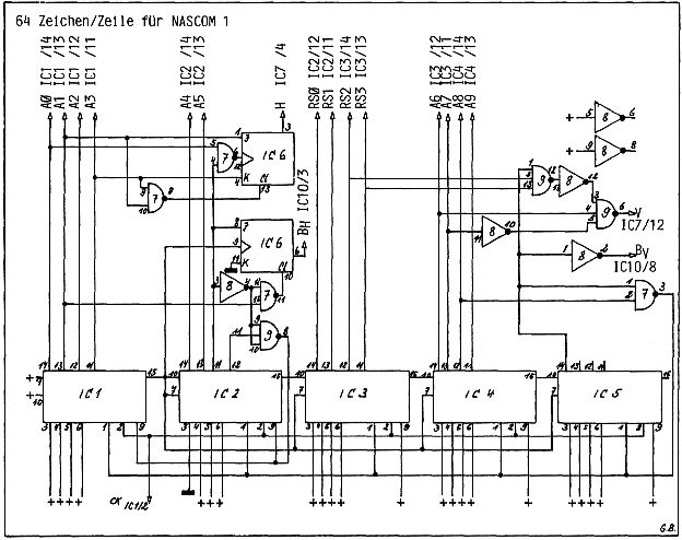 Um auch mit dem Nascom1 64 Zeichen pro Zeile darstellen zu können, müssen folgende Änderungen vorgenommen werden: