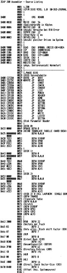 Ich bin jedenfalls froh, daß das CP/M nun überhaupt läuft, und werde in nächster Zeit einiges zu tun haben, um etwas mehr als den Befehl „dir“ (zur Anzeige des Disketteninhalts) oder „stat“ (für den Diskettenstatus) anwenden zu können. Hier wird mir wohl das Buch „Vom Umgang mit CP/M“ von Bernd Pol (IWT-Verlag) weiterhelfen, das ich sehr brauchbar finde. Vielleicht hätte aber auch der eine oder andere CP/M-erfahrene Leser nützliche Tips.