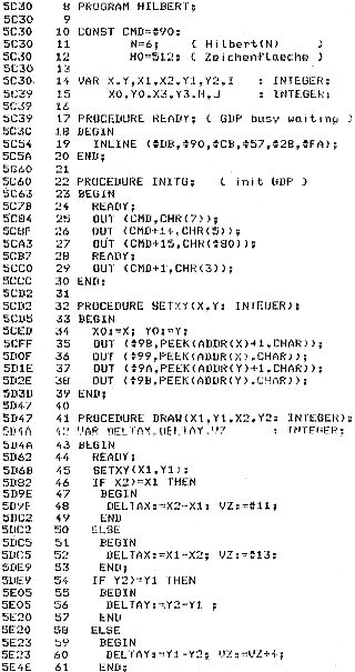 Dieses Programm, aus Algorithmen und Datenstrukturen Wirth, zeichnet die Hilbert Kurven bis zum N ten Grades.