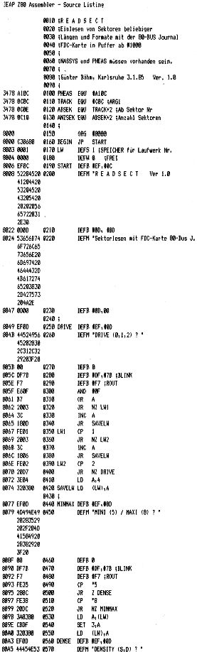 Lesefehler werden gemeldet und das Programm dabei abgebrochen. So kann man auf dem Bildschirm feststellen, wo der Lesefehler aufgetreten ist. Dieser Fall sollte eigentlich nicht eintreten, da jeweils 10 Versuche gemacht werden.