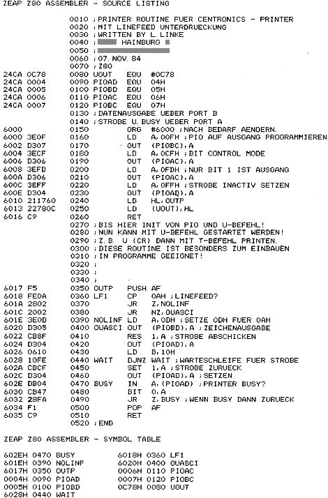Mehrfach wurde von Lesern eine Printroutine für EPSON Drucker gewünscht. Luzian Linke hat nun gleich drei kleine Programme eingesandt, um möglichst alle „Druckerwünsche“ zu befriedigen.