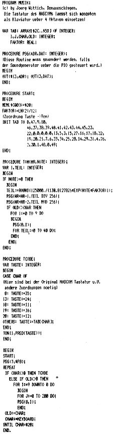 ‚MUSIK‘ verwendet den Soundgenerator, um auf der Tastatur monophon
