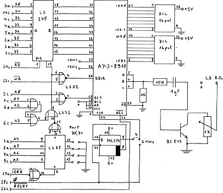 Das Layout für den Soundgenerator direkt am ECB-BUS ist fertig. Wir veröffentlichen hier die Schaltung für Leute, die evt. fädeln wollen. Wer es lieber komfortabel mag, sollte sich noch etwas gedulden, denn Georg Assmann ist dabei, die Schaltung zusammen mit einer Hardwareuhr auf einer Eurokarte unterzubringen.