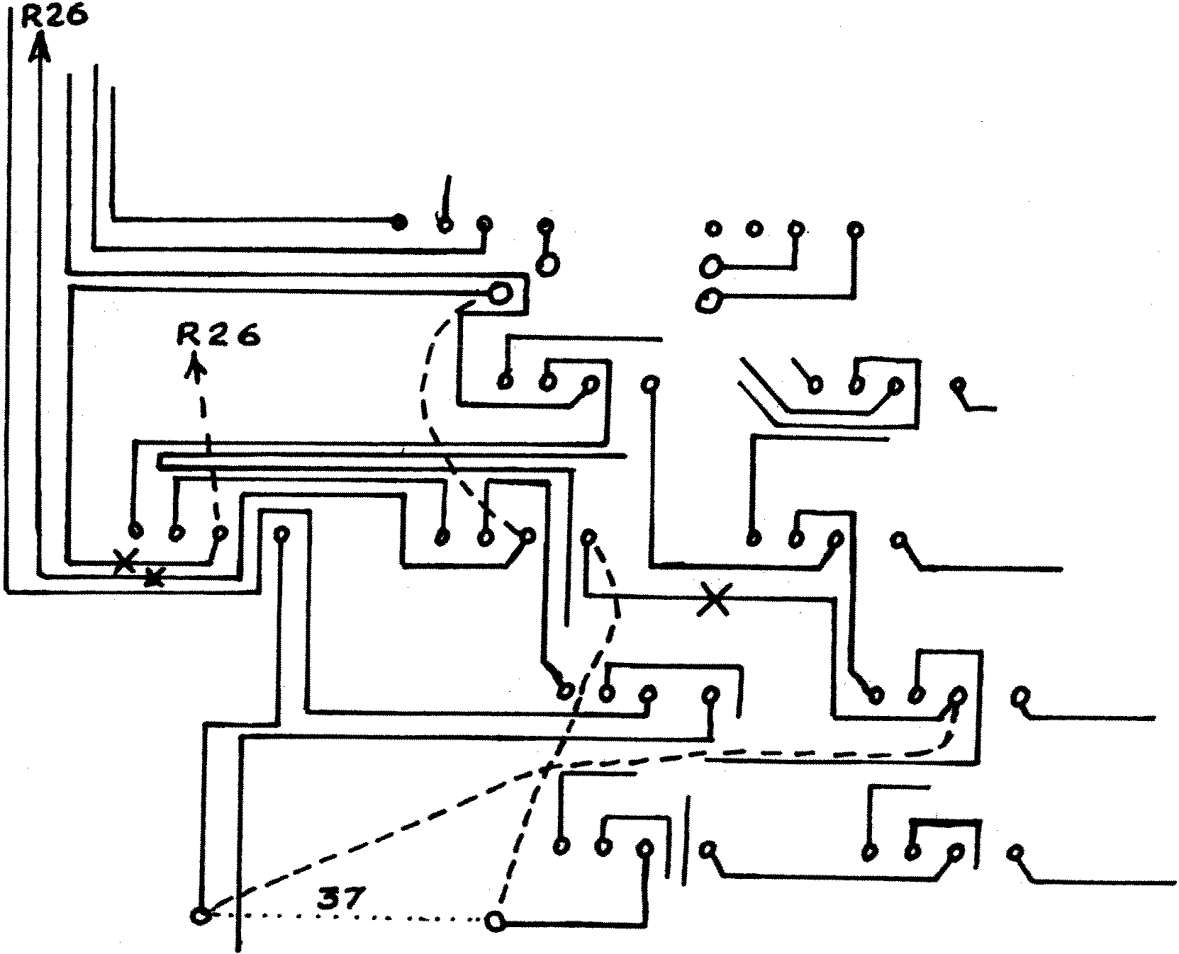 Remove link B7. Cut tracks at 3 points marked X.