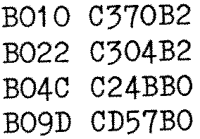 When the thing was running ‘right proper like’ another problem raised its head (as usual). The original address of the D-DOS software is B000H which messes up the memory map of a 48K machine (brag, brag) very nicely. To overcome this problem I moved D-DOS up to D000H. After disassembling the first 1K of D-DOS by hand, I came up with the following –