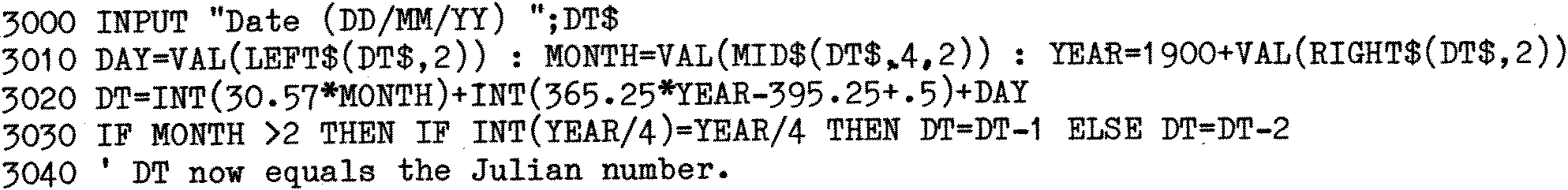 To convert an input date to a Julian number the following simple routine may be used, it does assume that the date will be this century.