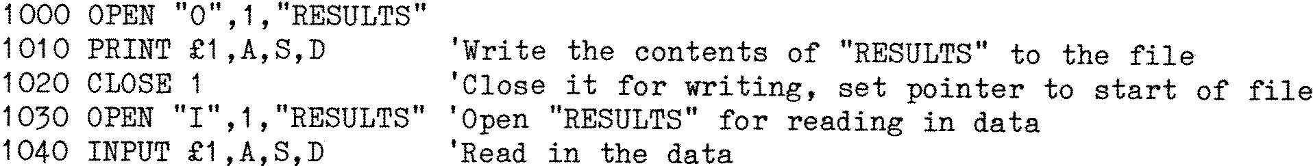 OPEN "O",2,"RESULTS" – opens file Results so that data from the program can be