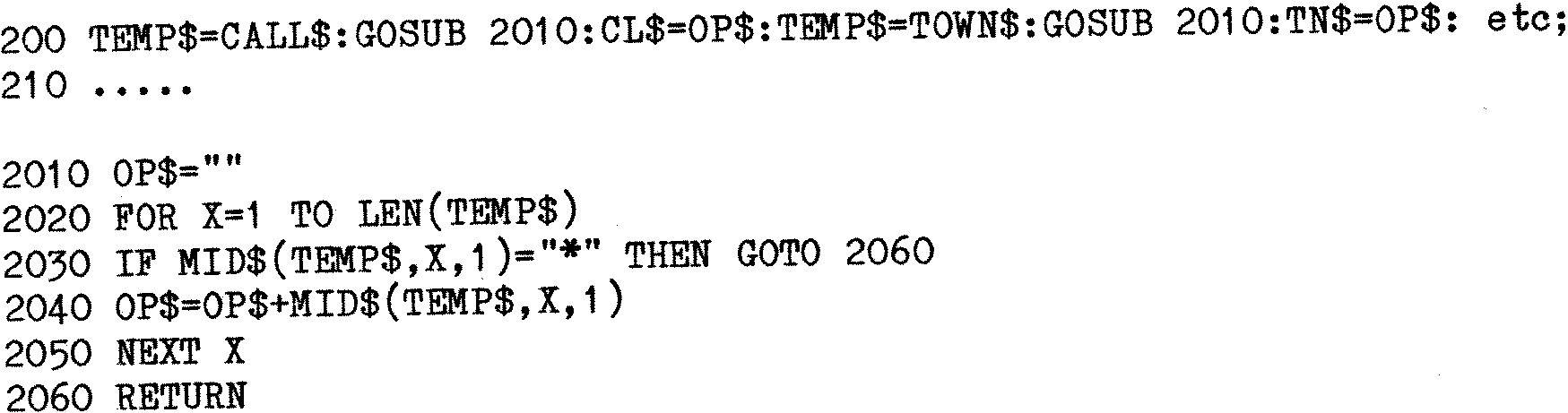 | Line 2030 | – | Reads the copy of the field stored in TEMP$ from left to right, one character at a time. If the character found is a “*”, the program skips to 2060 to return to the main flow. |