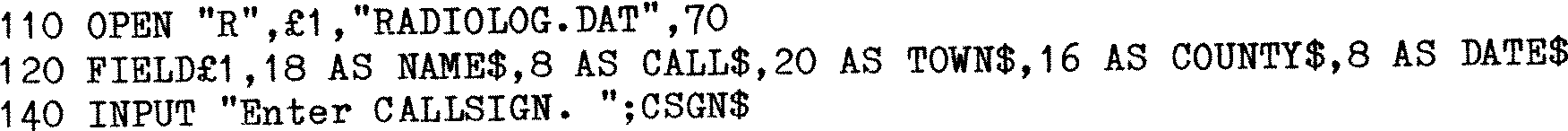 There is thus no need to expand the Fields already declared to accomodate the “*” character. If for example a “*” were added to the date: “20/06/83*", then since only 8 bytes have been allowed for the date Field, when LSET the “*” would “drop off the end”. N.B. A ‘RSET’ would have stored “0/06/83*” in the Record Date Field.