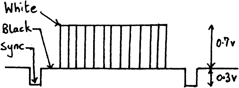 a 75 ohm load). The three levels of the signal are white, black, and sync, and