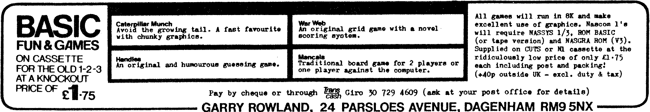 That’s almost all for this issue, but just one final comment to confuse those of you who have read Richard Beal’s article. I have a Shugart SA800 8″ drive connected to my GM829, and currently it spends most of its time powered down. In this state it does not interfere in any way with my use of the 5.25″ drives, so you may be lucky like me, or unlucky like RB, in which case I suggest you switch off and unplug before doing any rewiring!