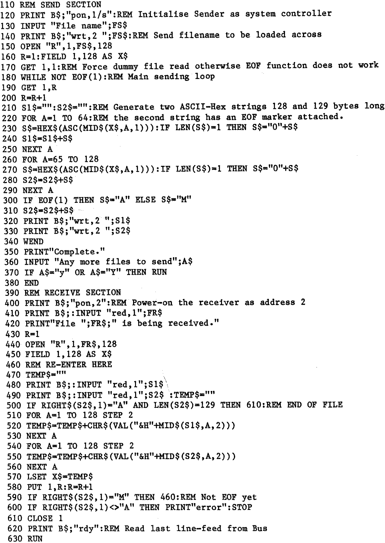CP/M File Transfer Program Via The IEEE488 Bus.
