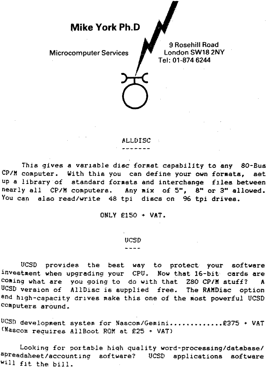 Floppy disk system. GM815/2, GM809 etc. Twin Pertec drives (350K per drive) in cabinet with power supply. Double density controller card, CP/MZ 2.2 operating system, and lots of software including Pascal, BASIC and C languages, Utilities, Adventure, Games and Business software. Totally reliable system. #450. Also, twin single sided drives in cabinet with power supply and Henelec Singler Density Controller. Including all above software and Vers. 2.2 operating system. Haggle around #275. Call John on __-___-____ between 10am and 7.30pm.