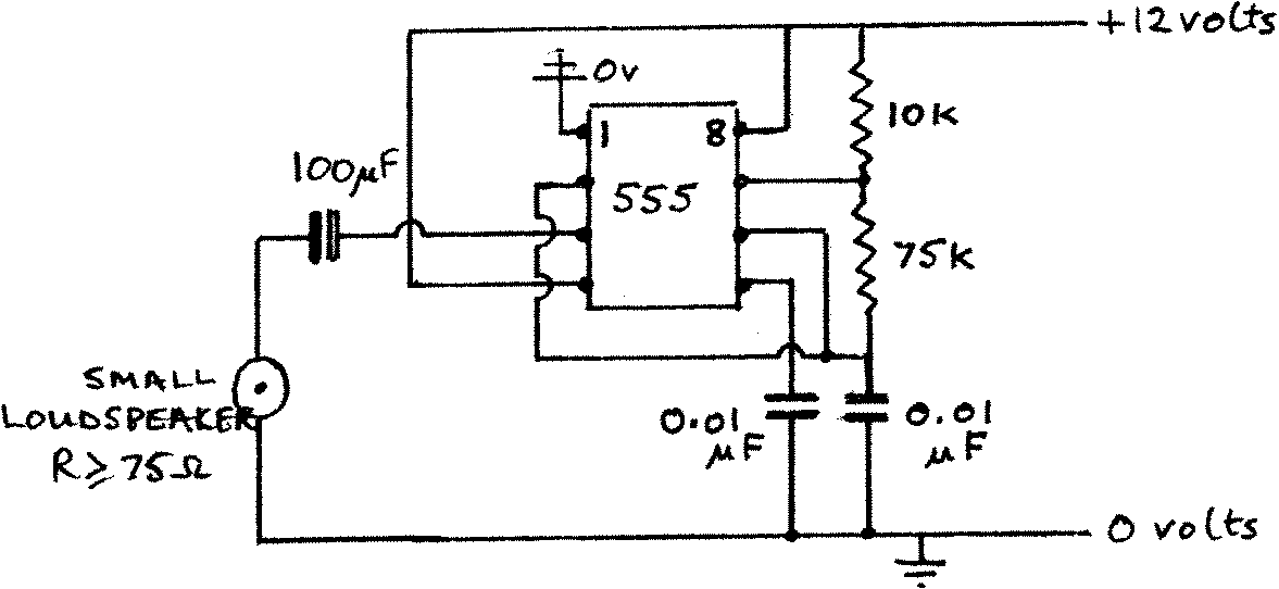 the other set of contacts supply current to the astable. A tone of about 1kHz