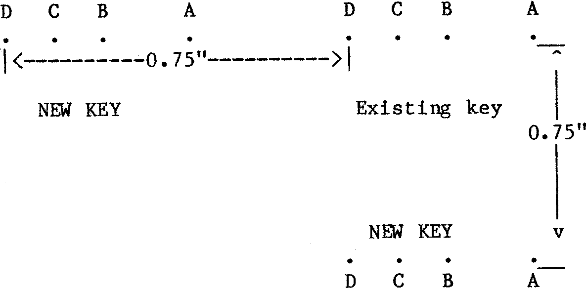 distance from the existing pin D to the new key’s pin D is exactly 0.75″; mark