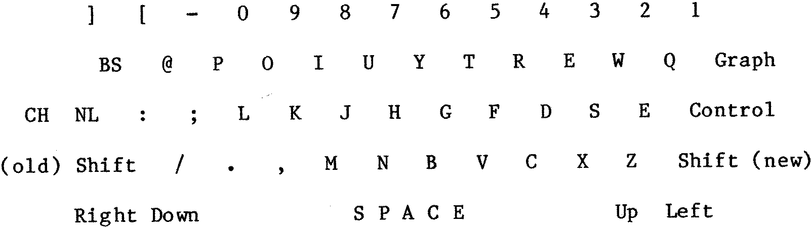 In order to obtain the correct bit pattern on the databus the new keys must be inserted in the driver and sense circuitry in appropriate places; after some trial and error, a suitable sequence was worked out which involved some track cutting. The allocation of keys on the keyboard, viewed from the underside is as follows:
