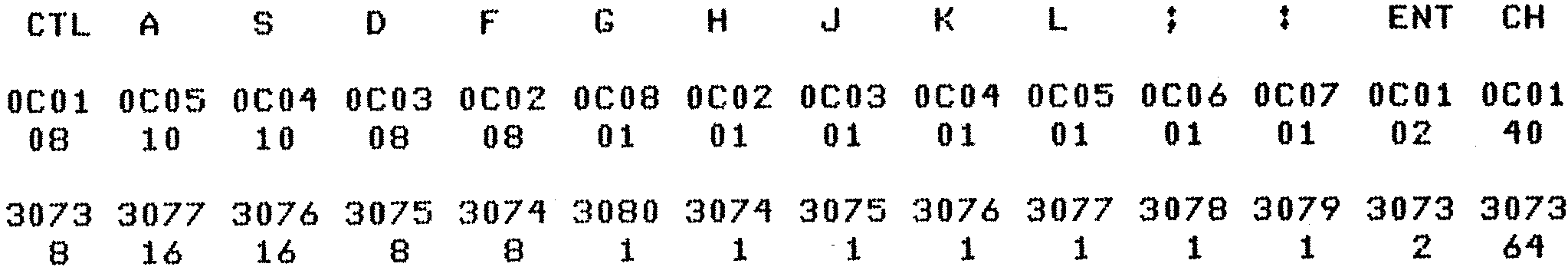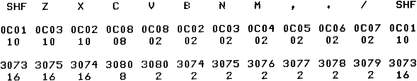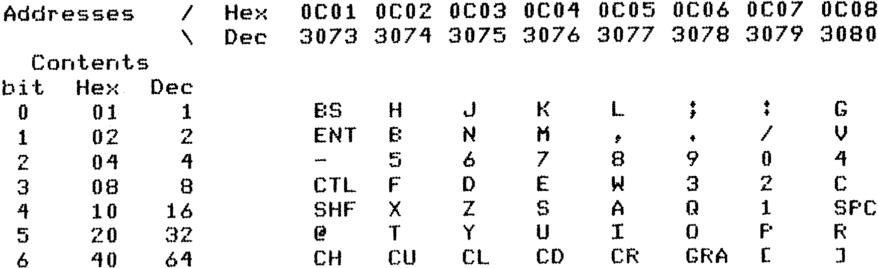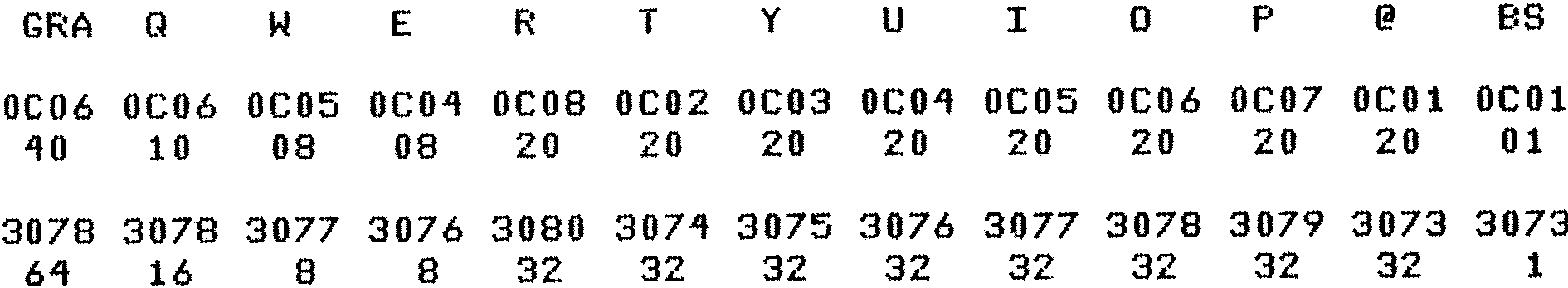 Nascom Keyboard Map Chart