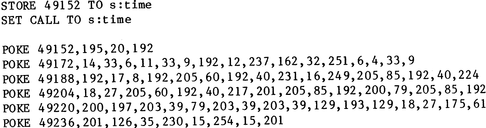 Naturally these routines could be used with any high level language which has the ability to PEEK and POKE and to CALL user subroutines. The principles are the same regardless, but care should be taken as to where they are put as some parts of programs could crash into them if they are located at c000h, or worse, they could be moved by the program itself.