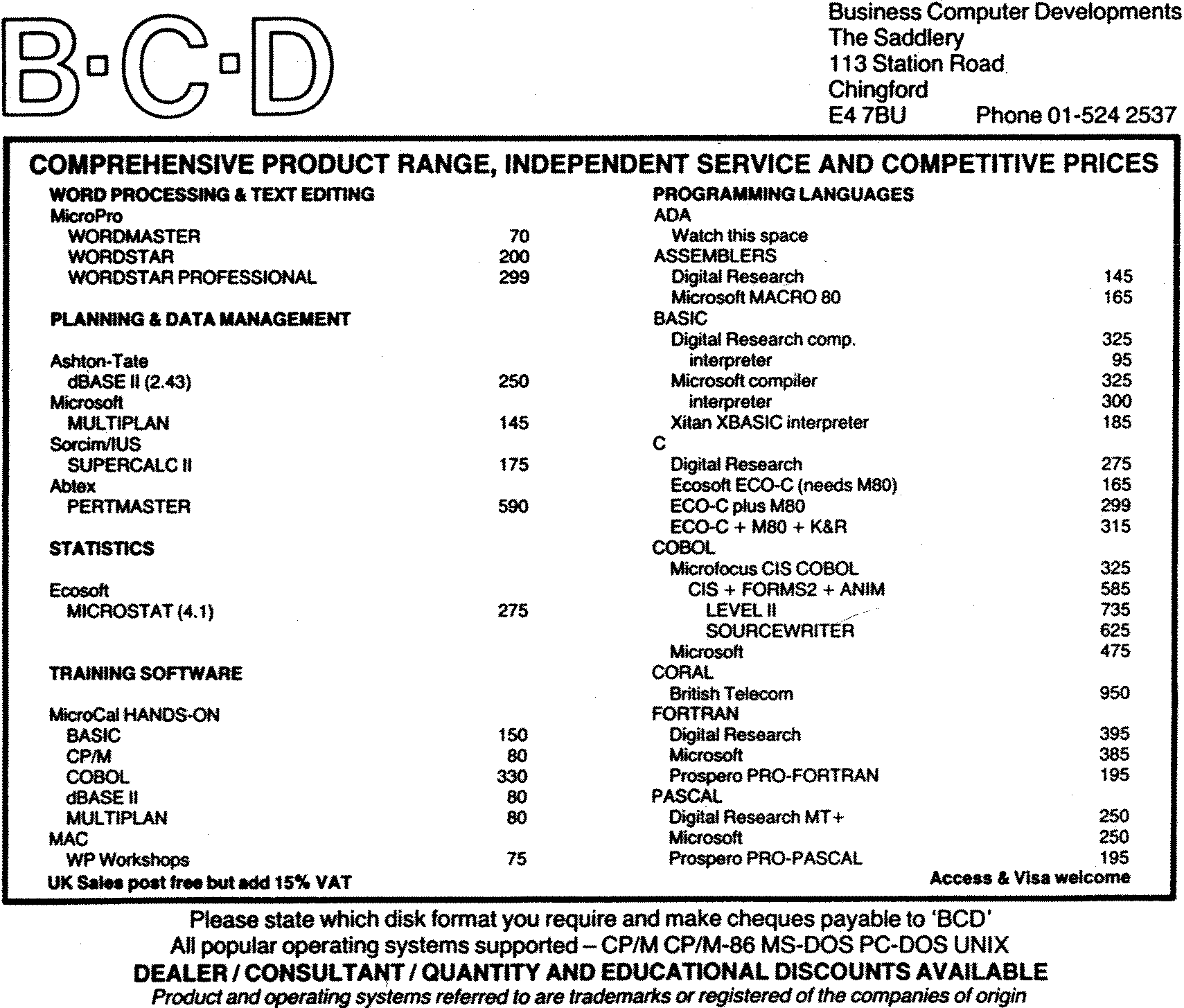 I would like to echo David Plews’ comments in praise of the CPMUGUK (Vol 3, Issue 4 of 80-BUS News). I joined some months ago and soon found their journal essential reading (as is 80-BUS News of course!). The quantity of virtually free software is incredible. I haven’t even read all the index yet! The service from the ‘Librarian’ (Derek Fordred) is excellent; I normally receive disks within 9 days of posting off my request.