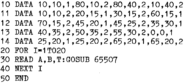 Using this method an array of coordinates could be plotted within a short loop. As an example the following program is suggested: