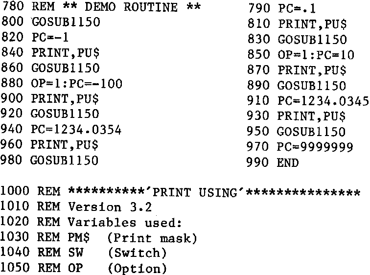 Below is a ‘PRINT USING’ routine, also from Mr.James Weatherson-Roberts.