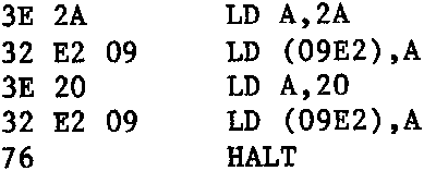 3E 2A LD A,2A 32 09 FF LD (09FF),A