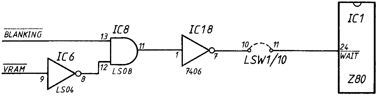 As I had implemented the no wait modifications on the RAM board in INMC NEWS issue 7, I was able to use some of the wait circuitry. I also found a spare inverter on the board and so I implemented the modification as follows:
