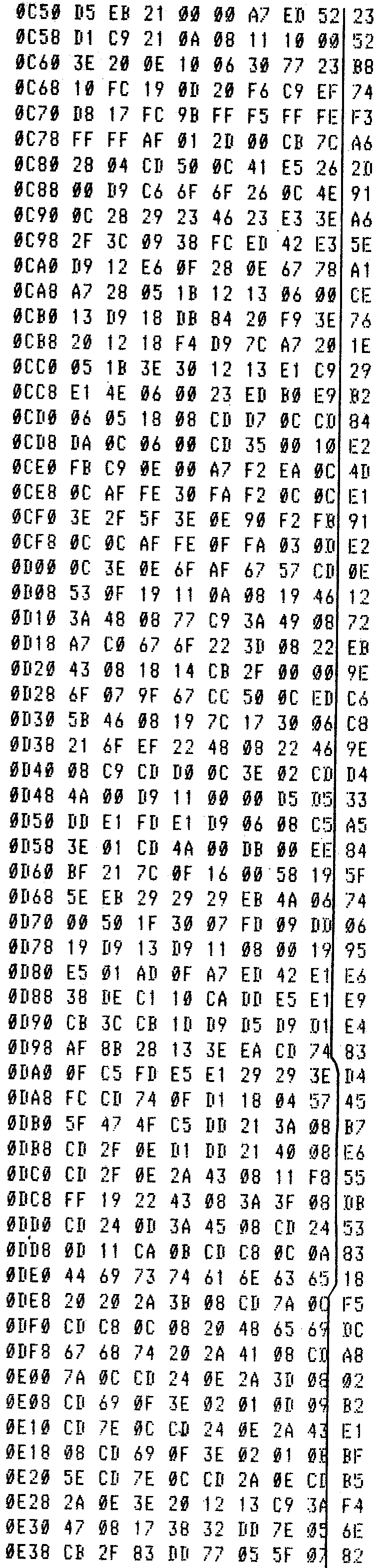 . > Execute At 0E6A > > Note That The Right Hand Column > Of This Listing Is The Checksum > And Must Not Be Typed In! >