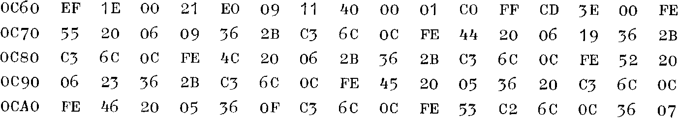 A few things to note; the subroutine starts at 0C60; if you have a Bits & PC’s graphics board, put E0 at 0C62. You can also load register C with the character of your choice and call 0C6D. Fun, isn’t it? (It seems to impress non-computer owners, too). Keen users of disassemblers will find some very interesting instructions mixed in with the well-known ones.