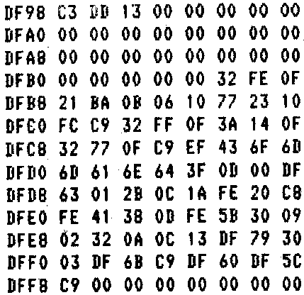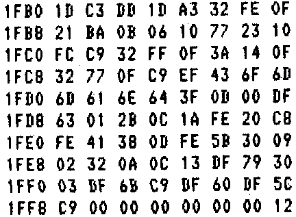 Additional feature: Type a colon (:) and press ENTER. The message ”Command?” is displayed, and the system waits for you to enter a NAS-SYS command, which is then obeyed. On completion of this command, control remains within ZEAP. This makes it very easy to use the Read and Write commands to save the source file or object program. It can also be useful to use the Tabulate and Modify commands to examine memory locations. To provide this feature it has been necessary to remove the Q command from ZEAP, but this command has been superceded by the J and K commands.