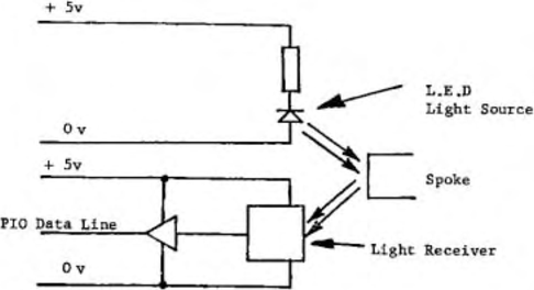 pulley which turns the drum. When a spoke goes past the switch light is reflected