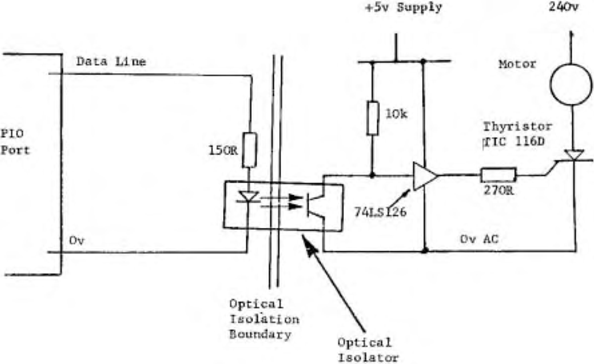 The 5 V. power supply for the circuit to the right of the isolation boundary must