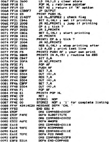 N.B. As this program alters Compass while assembling, ensure that ALL ALL errors are dealt with BEFORE assembling to memory.