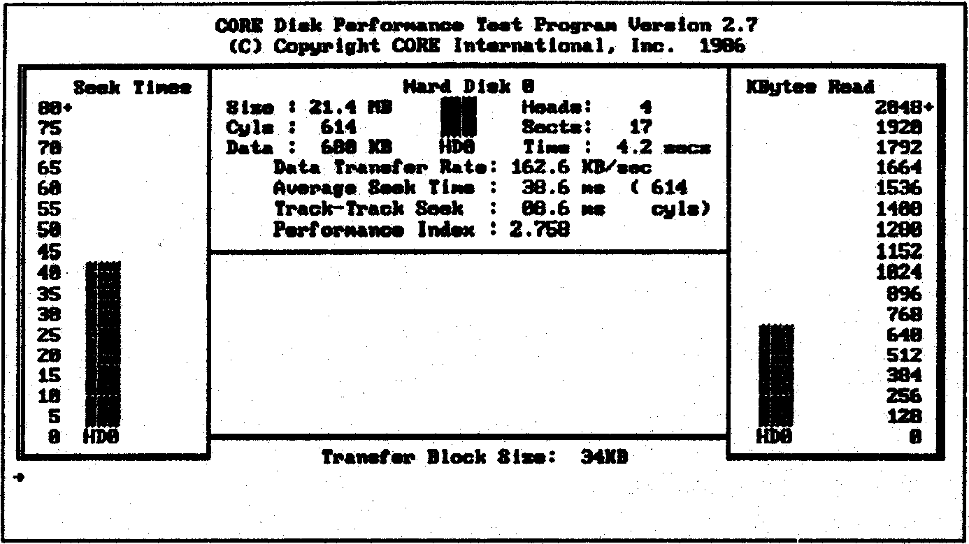 Lastly, is my favourite for upsetting people who think their disk drives actually perform to the manufacturers spec. I haven’t found a drive yet which will actually do what the spec says. Coretest by Core International only works on hard disks but it’s fun and you can really hear the disk drive working as it does its thing.